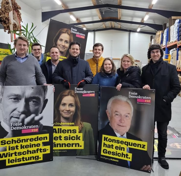 Dem einen oder anderen wird es schon aufgefallen sein: Seit Sonntag hängen die ersten Plakate. Ab jetzt stehen wir jeden Samstag Vormittag am Böttcher-Rondell in der Heider Innenstadt. Wer mit uns ins Gespräch kommen will, ist herzlich eingeladen, uns einen Besuch abzustatten. Wir freuen uns auf die Gespräche. Und nicht vergessen: Am 23. Februar FDP wählen. 💛